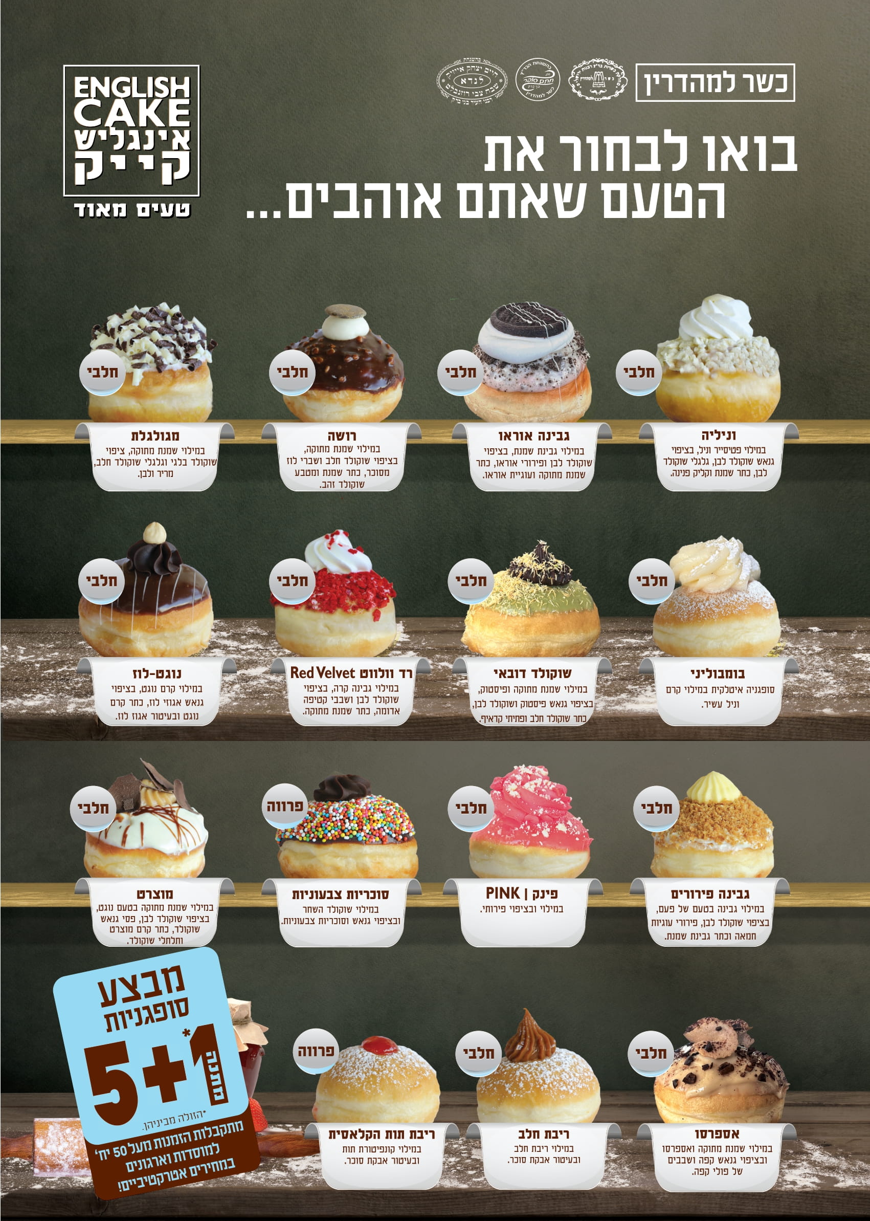 בימי החג אינגליש קייק מציעה סופגניות אפויות במגוון מילויים ללא טיגון-מופחתות קלוריות.